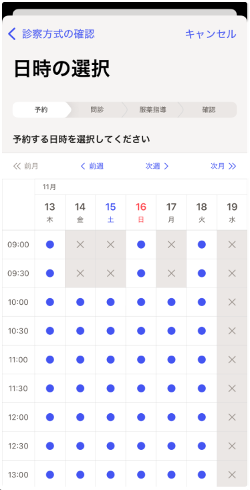 ⑤ 受診したい日時を選択したら、予約に必要な本人情報やクレジットカード情報などを入力する。