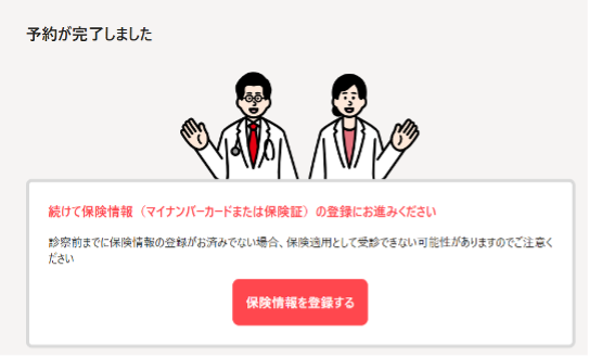 マイナンバーカードを選択した場合は、登録はご予約確定後になります。